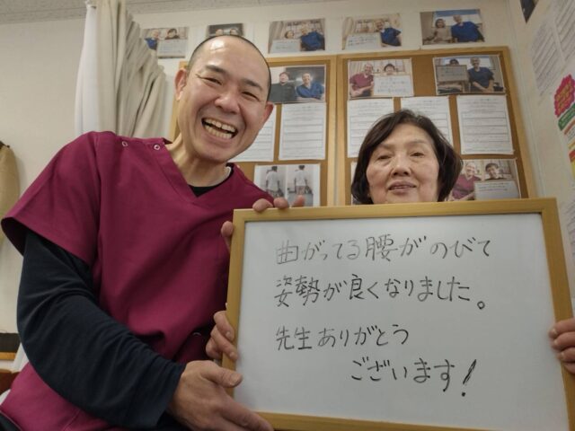 猫背・腰痛・足が上がらず歩きにくい。どこに行っても改善せず悩んでいた所にチラシを見て治療してもらいました。