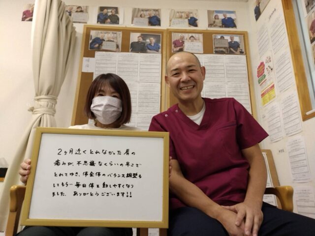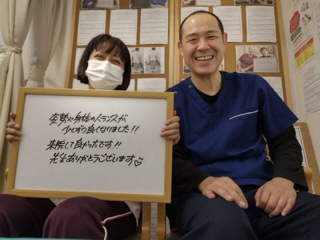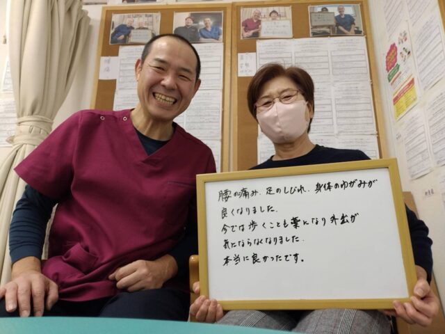 腰痛で歩くのがつらくなって不安でしたが、村田先生は私の話をしっかり聞いてくださり、私に合った治療をしてくれました。